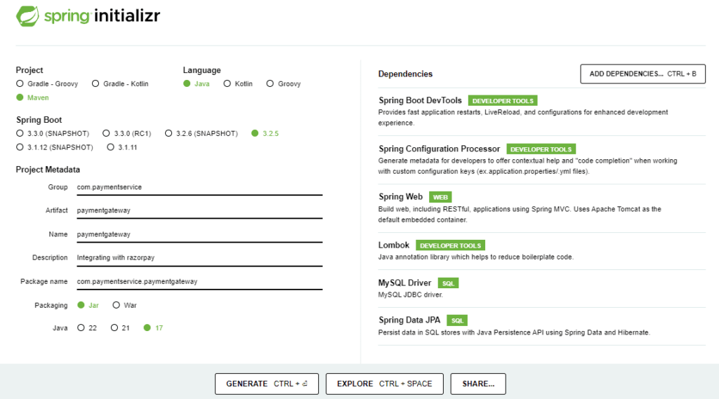 Next, open MySQL Workbench or in IntelliJ Database and create a database named `payment`. Now, run the app and check if it is working correctly.