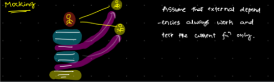 Mocking is utilized to supply mock data. For instance, if test “A” depends on functionality from tests “B” and “C”, we assume that “B” and “C” operate correctly. By using mock data for “B” and “C”, we can focus solely on writing the code for test “A”.